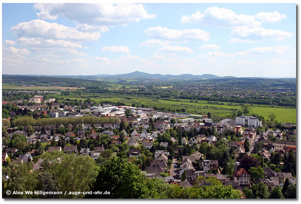Siegburg mit Blick auf die Auferstehungs-Kirche (li.) und Servatius-Kirche (re.).