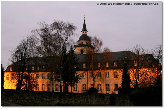 Die Abtei Michaelsberg in der Abenddämmerung.