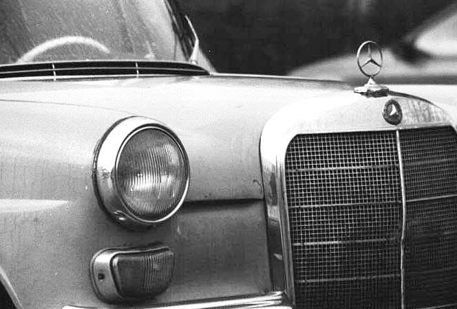 Während meine "bessere Hälfte" ;-) im ströhmenden Regen den Flohmarkt nach CD's durchforstete, "langweilte" ich mich im Auto - bis ich den alten Benz entdeckte und meine Kamera auf dem Beifahrersitz schußbereit lag ...