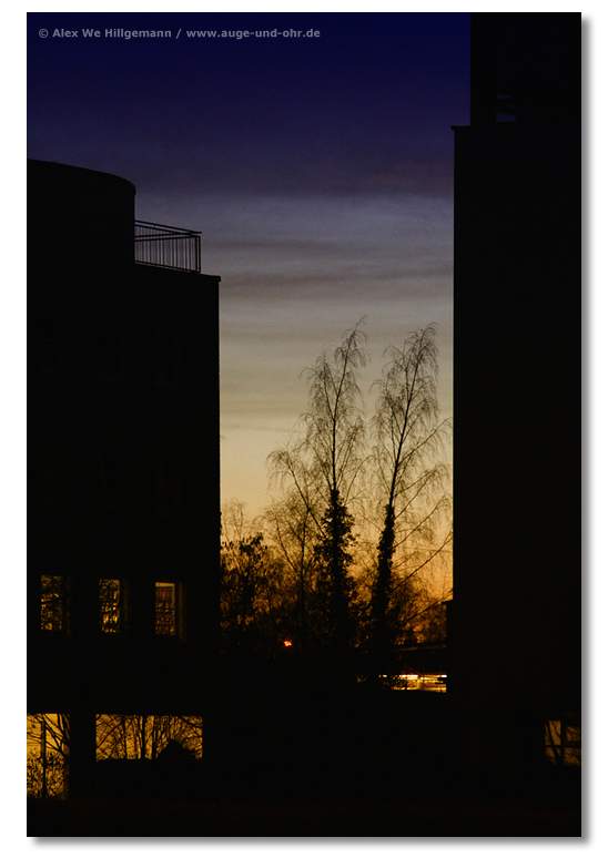 ... nach rechts von der oberen Sieglarer Strasse (vom Rathaus kommend) bei Sonnenuntergang.