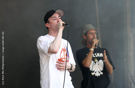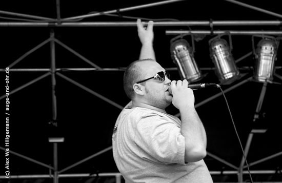 "Konvex" HipHop ... Rap - für mich bisher ein "unbekanntes Feld" ;-) ! Um so erstaunter war ich: Texte mit Sinn & Verstand und: zum Nachdenken! Ein Live-Konzert das mitreißt !!! Anläßlich des 60.-jährigen Julbiläums des CVJM Siegburg spielten sie dort auf dem Marktplatz live. 12.08.2007 (Weitere Infos: www.konvexcrew.com) |