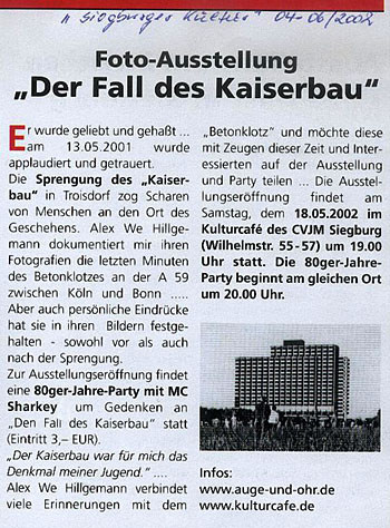"Der (Fall des) Kaiserbau" fand am 17.05.2003 statt ...